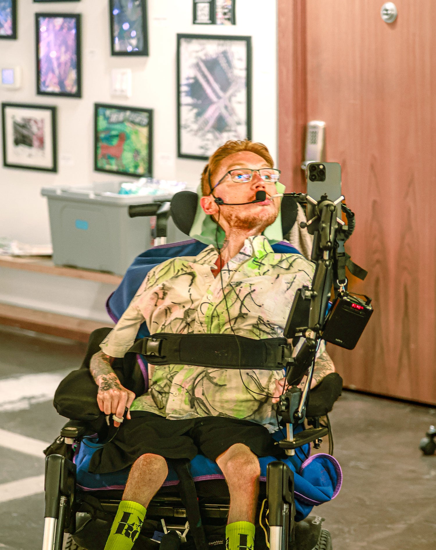I'm an artist who pushes boundaries and has managed to make a significant mark within the art community. Despite being born with muscular dystrophy, I've consistently discovered avenues to express myself through my artistic endeavors. Although I had been drawing throughout most of my life, the advancement of my condition eventually deprived me of the ability to employ my hands. However, as time passed, I stumbled upon a fresh approach to creating art by applying paint to the wheels of